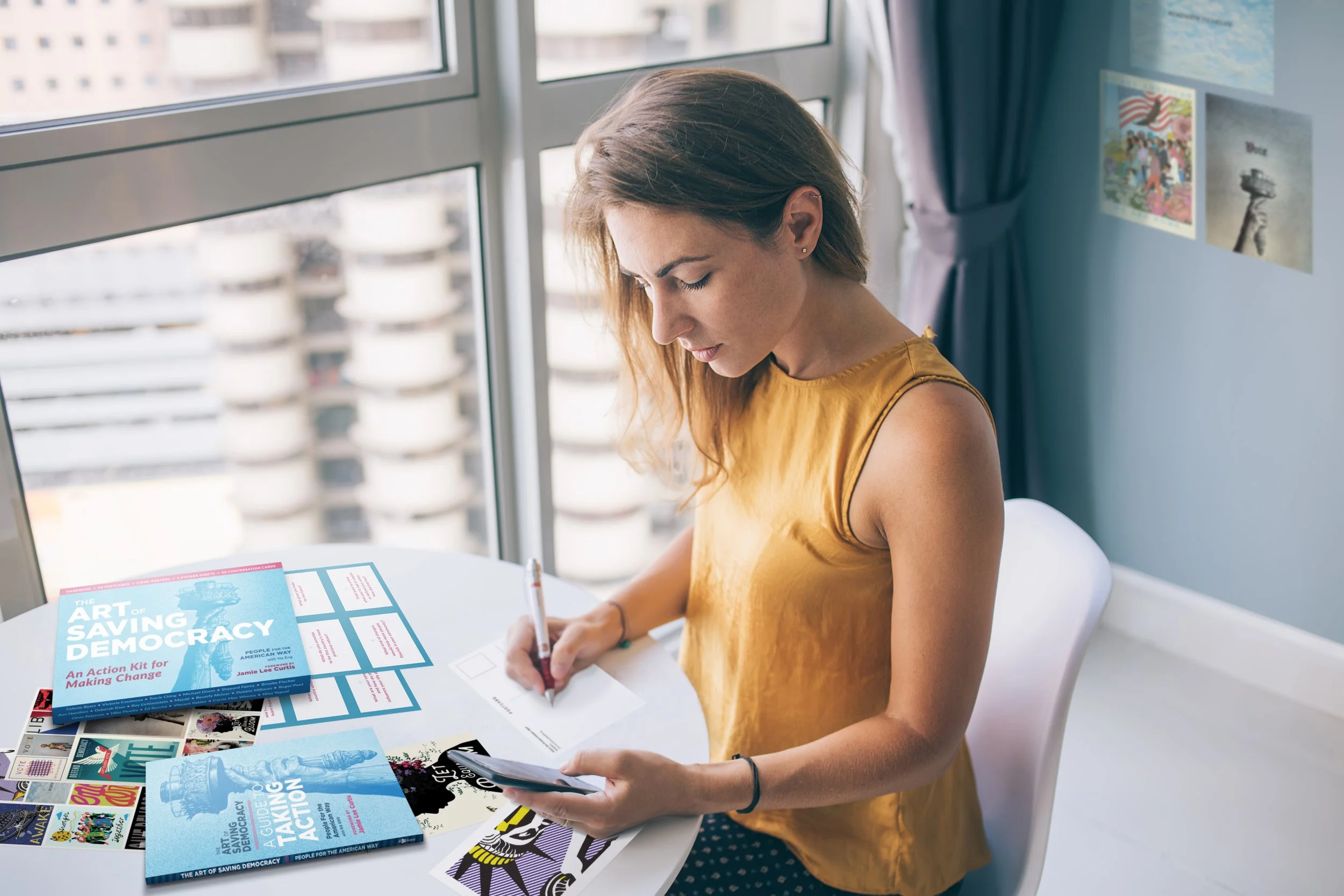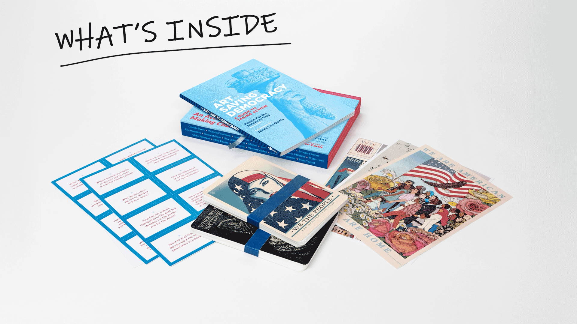 Inside a beautifully crafted keepsake box, you’ll find striking art by world-renowned artists and encouraging guidance from a storied advocacy organization. Packed with resources to spark connection and action, this is your launch kit for saving our democracy.